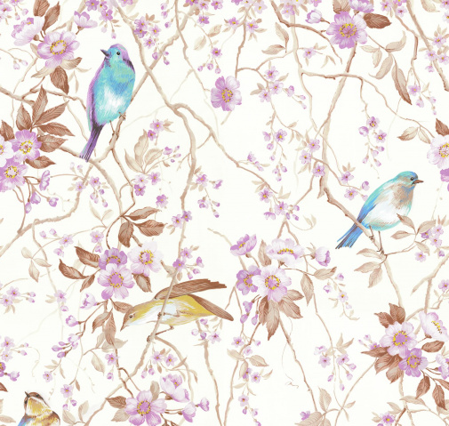 РисунокЦветы Мелкие, Растения;ветки;листья, Птицы