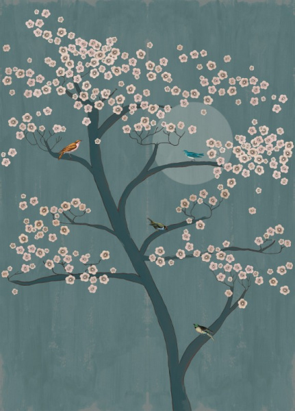 РисунокРастения;ветки;листья, Птицы
